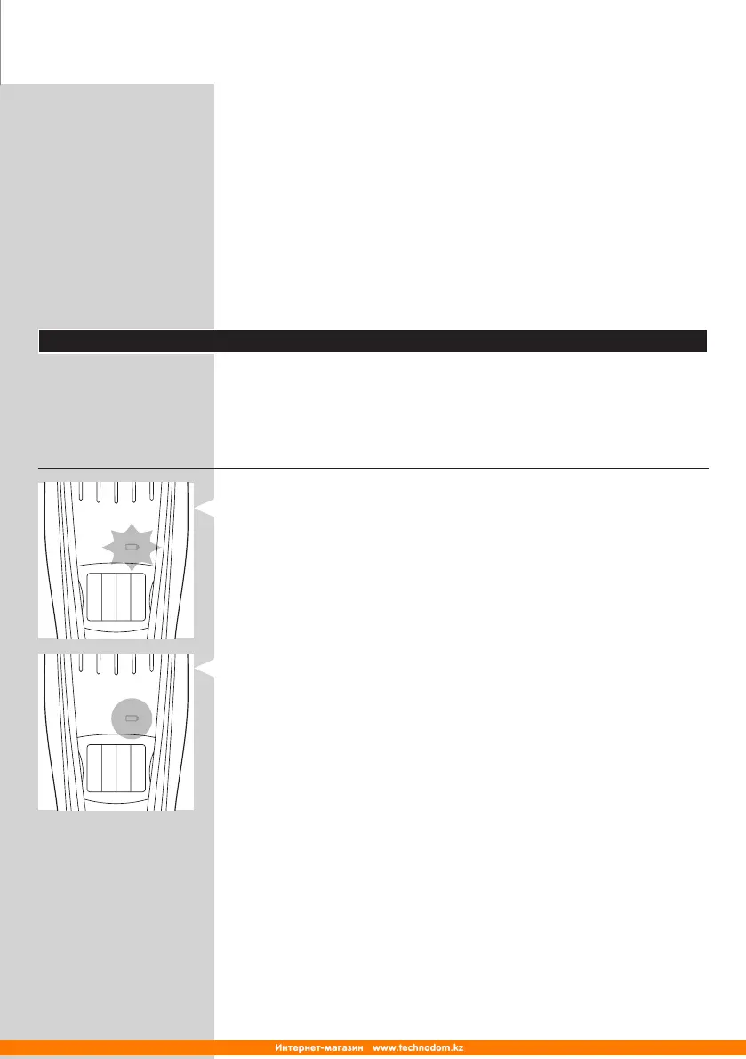 - Když je baterie téměř vybitá, indikátor nabíjení začne blikat oranžově.