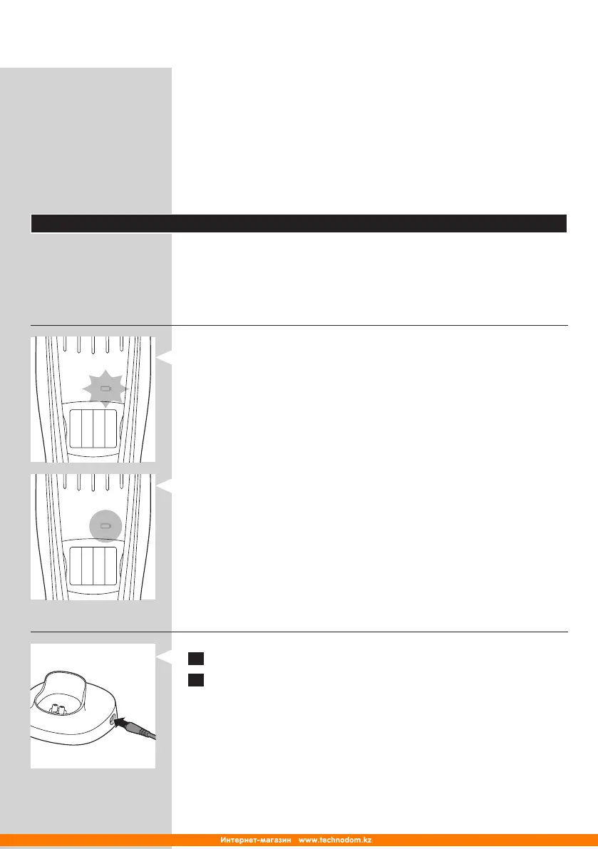 - Ja baterija ir gandrīz tukša, uzlādes lampiņa sāk mirgot oranžā krāsā.