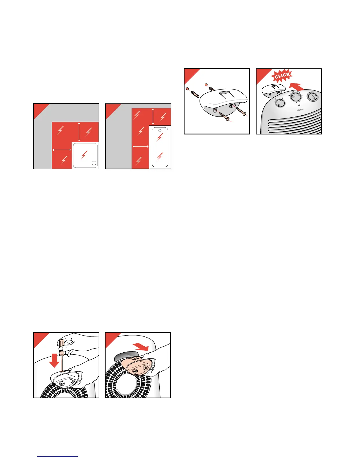 - Sæt varmeblæseren korrekt ned i beslaget (“klik”)