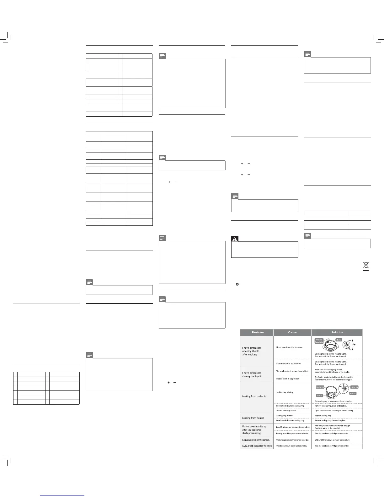 If your electric pressure cooker does not function properly or if the cooking quality is insufcient, consult the table below. If you