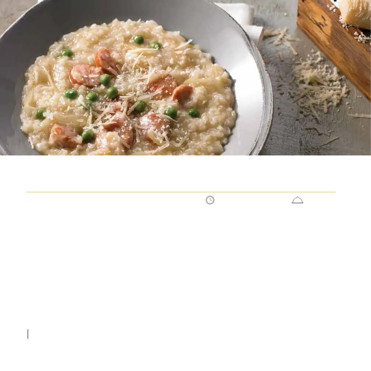 4. Remove lid, Add sausage and peas; cover, stand 5 minutes. Sr in half the cheese and thyme; season to taste.