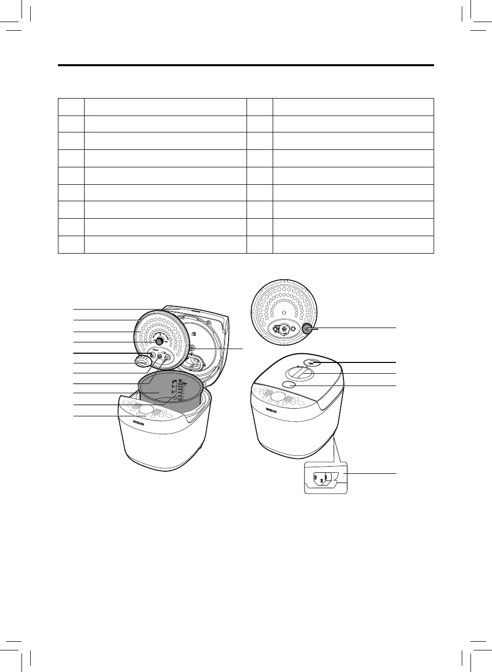 c Detachable inner lid l Temperature controller