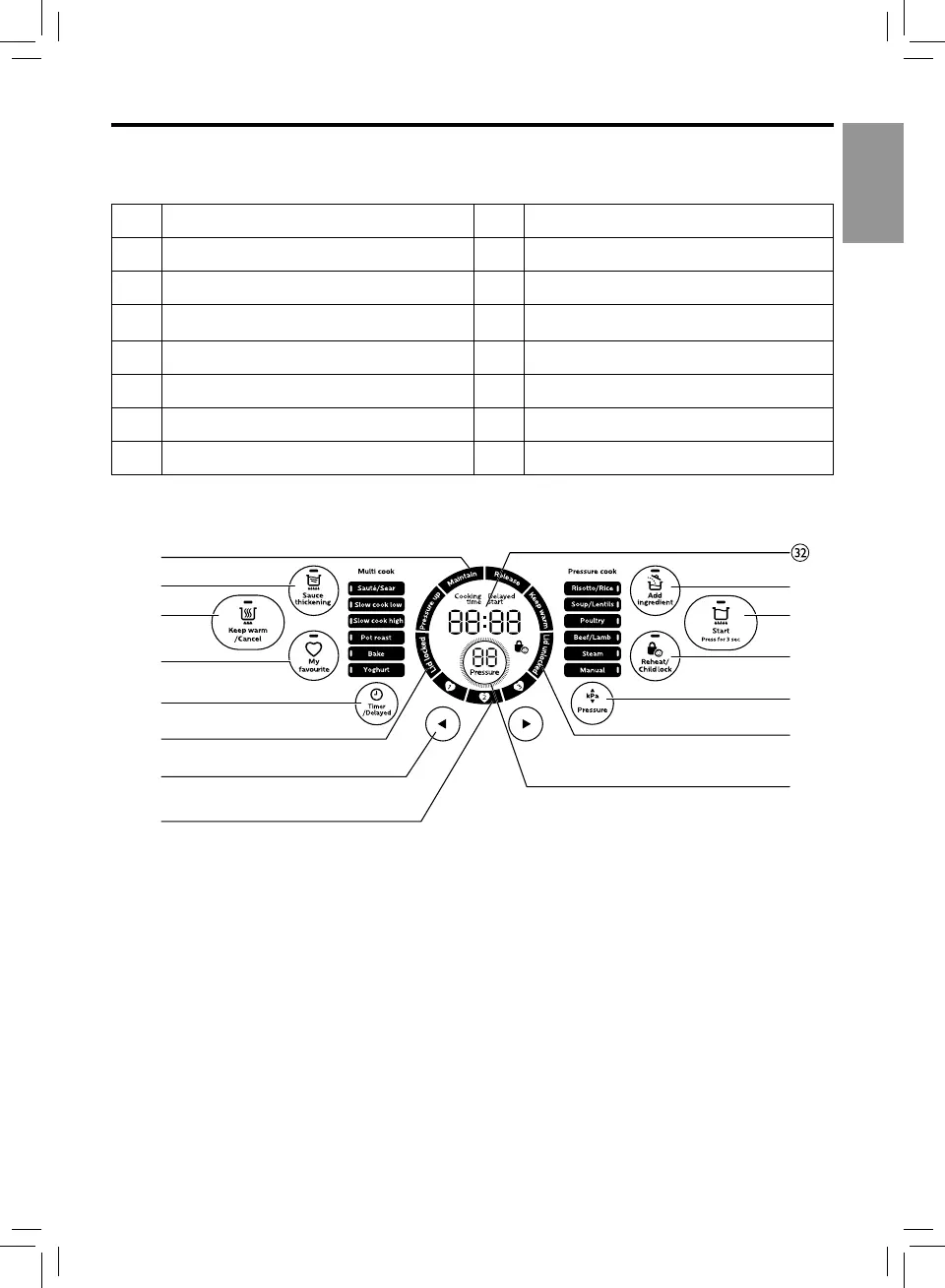 r Cooking process indicator z Pressure display