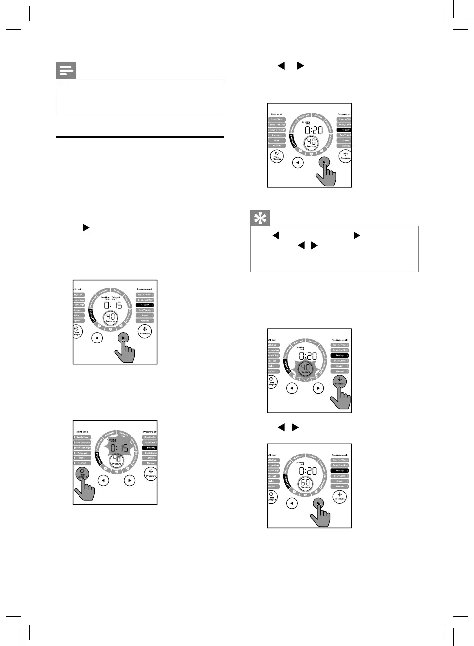 » 已選擇的壓力烹調功能燈將亮起,