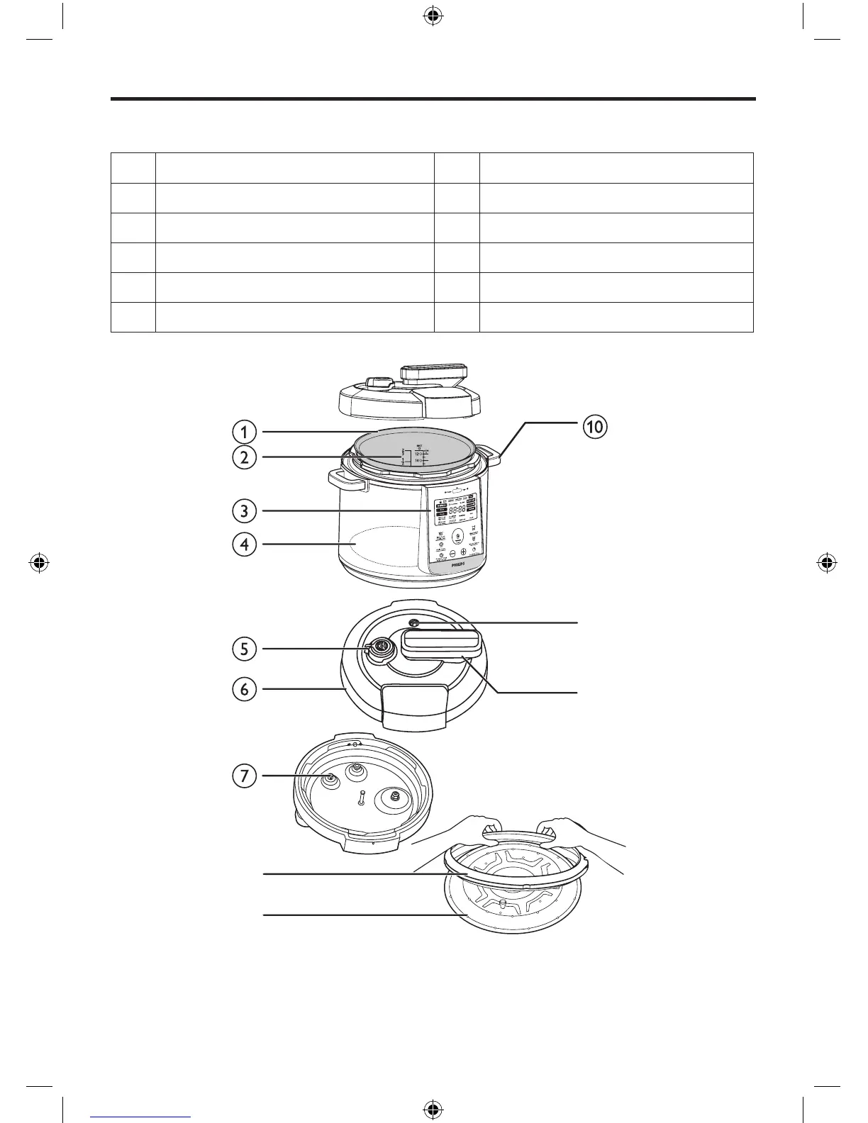 Philips HD2178 - Product Overview and Components; Main Cooker Body Components; Lid and Pressure Mechanism Components