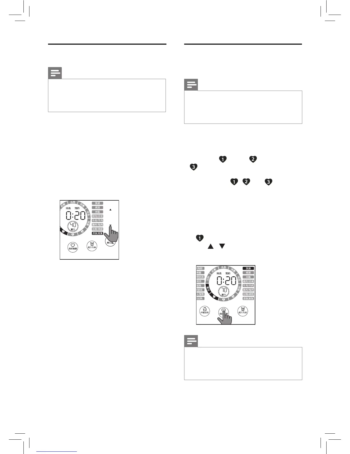 in sequence, tap and hold 開始烹飪