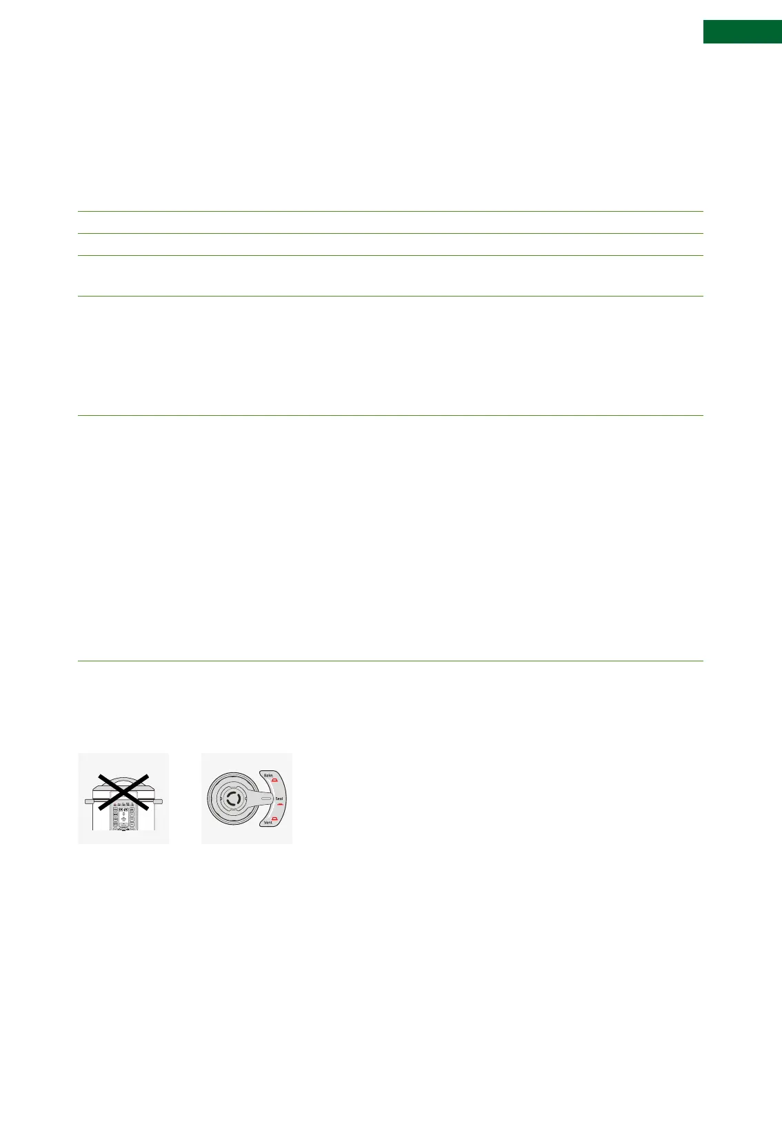 4. When cooking is complete, allow the pot to stand for 10 minutes or until the oating valve has dropped. Turn pressure