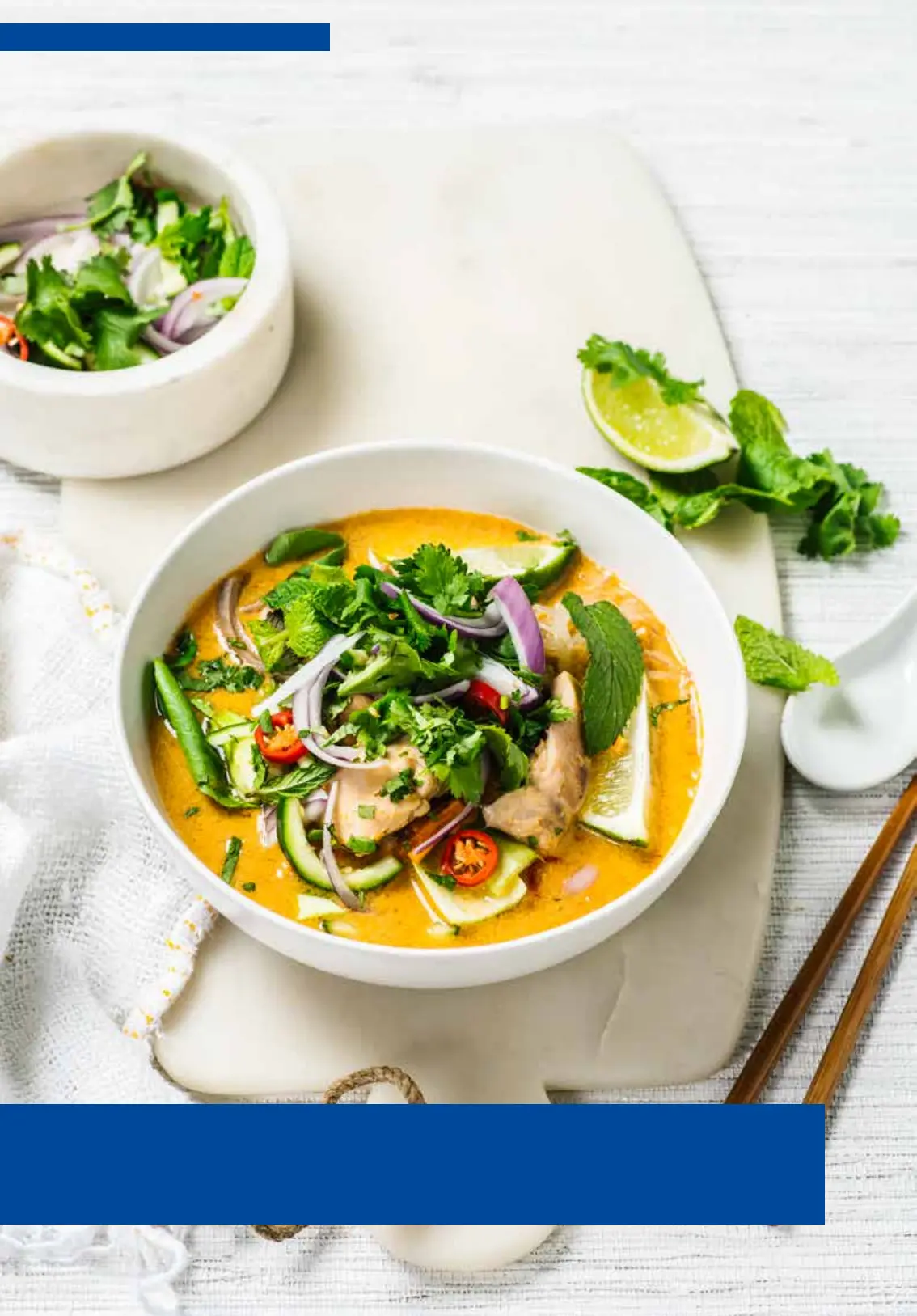 Laksa is delicious topped with a range of fresh vegetables. Try bean shoots, chopped tomatoes,