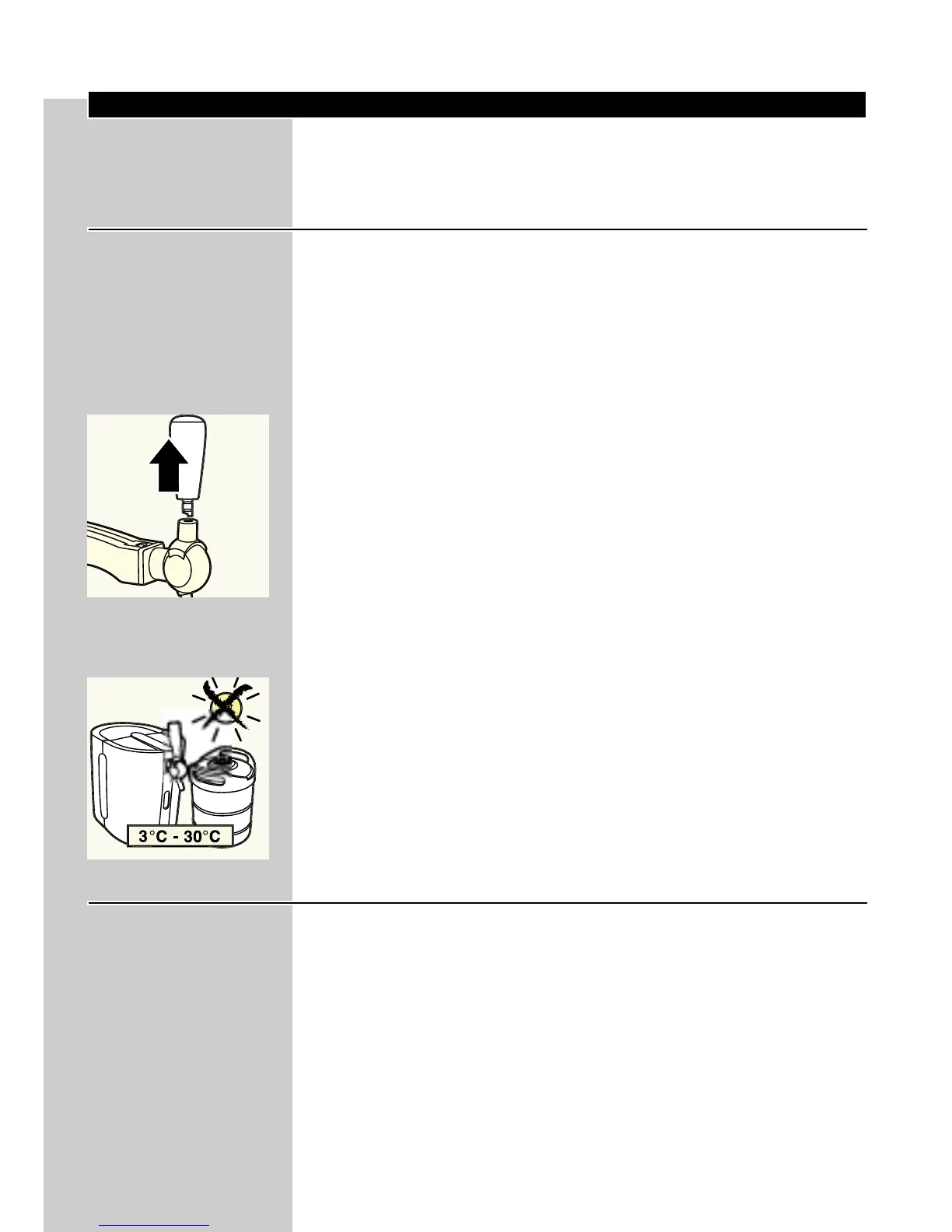◗ To avoid the risk of explosion, do not expose the keg to direct