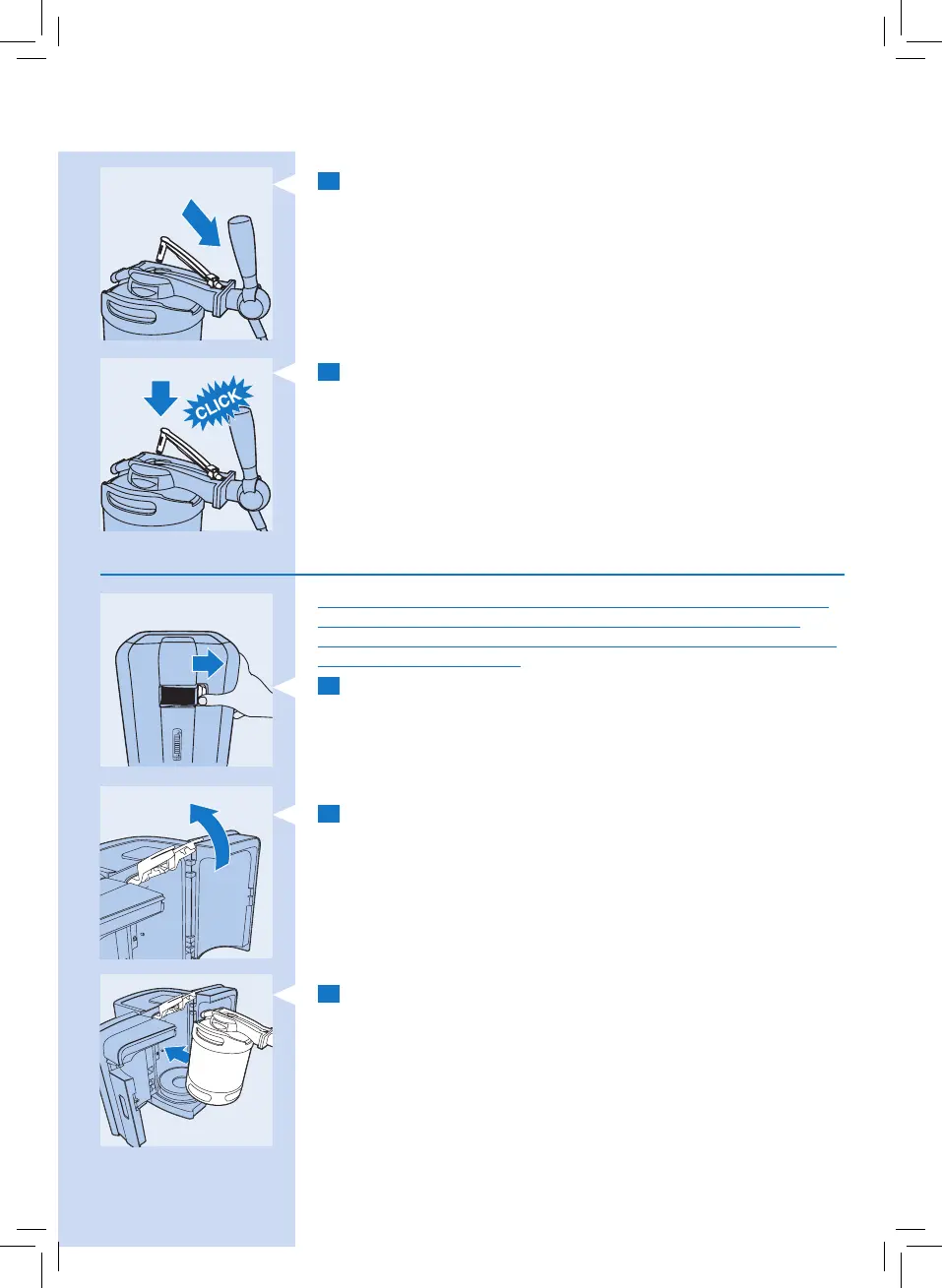 « Fixation du robinet sur le fût » et « Insertion du tuyau dans le