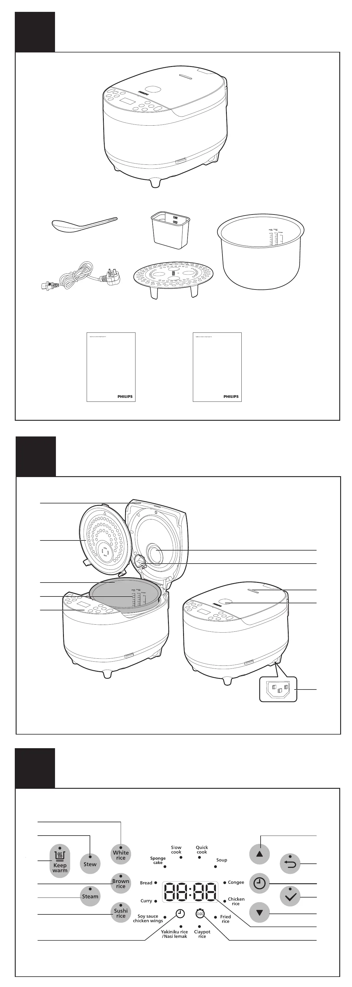 Philips HD4518 - Overview of Rice Cooker; Product Overview Diagram; Control Panel Overview; Cooking Programs