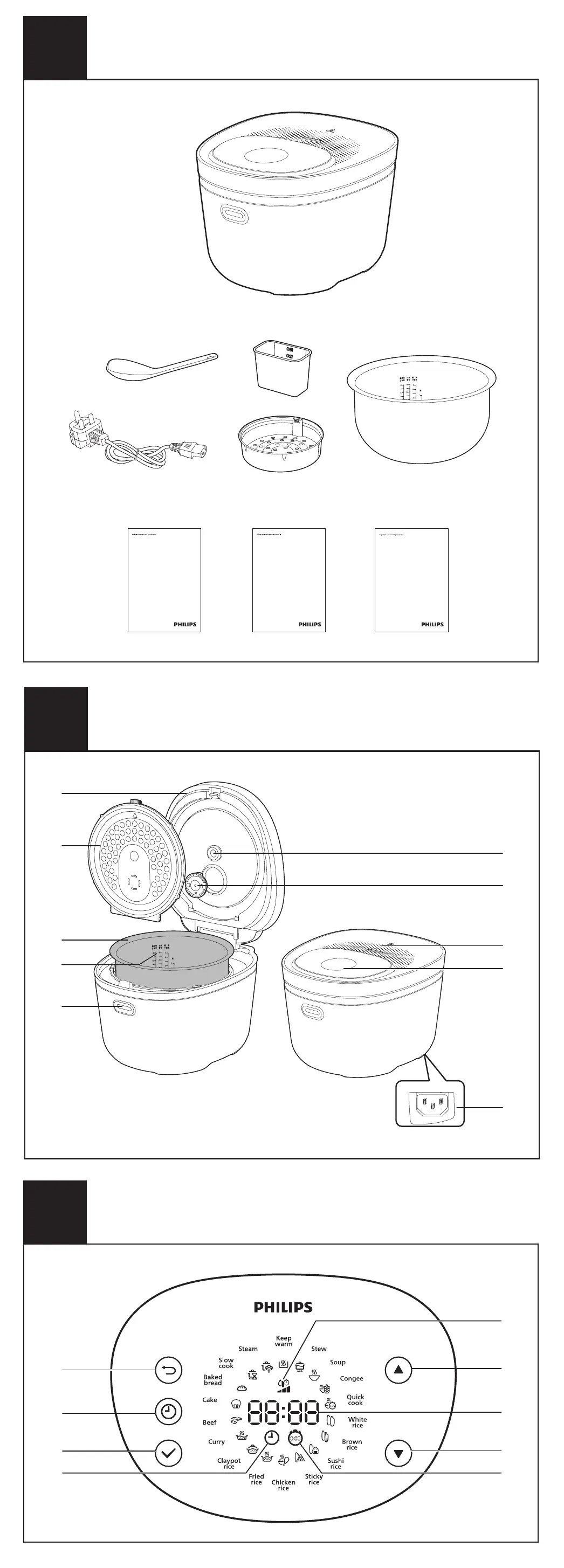 1 Take out all the accessories from the inner pot. Remove the packaging