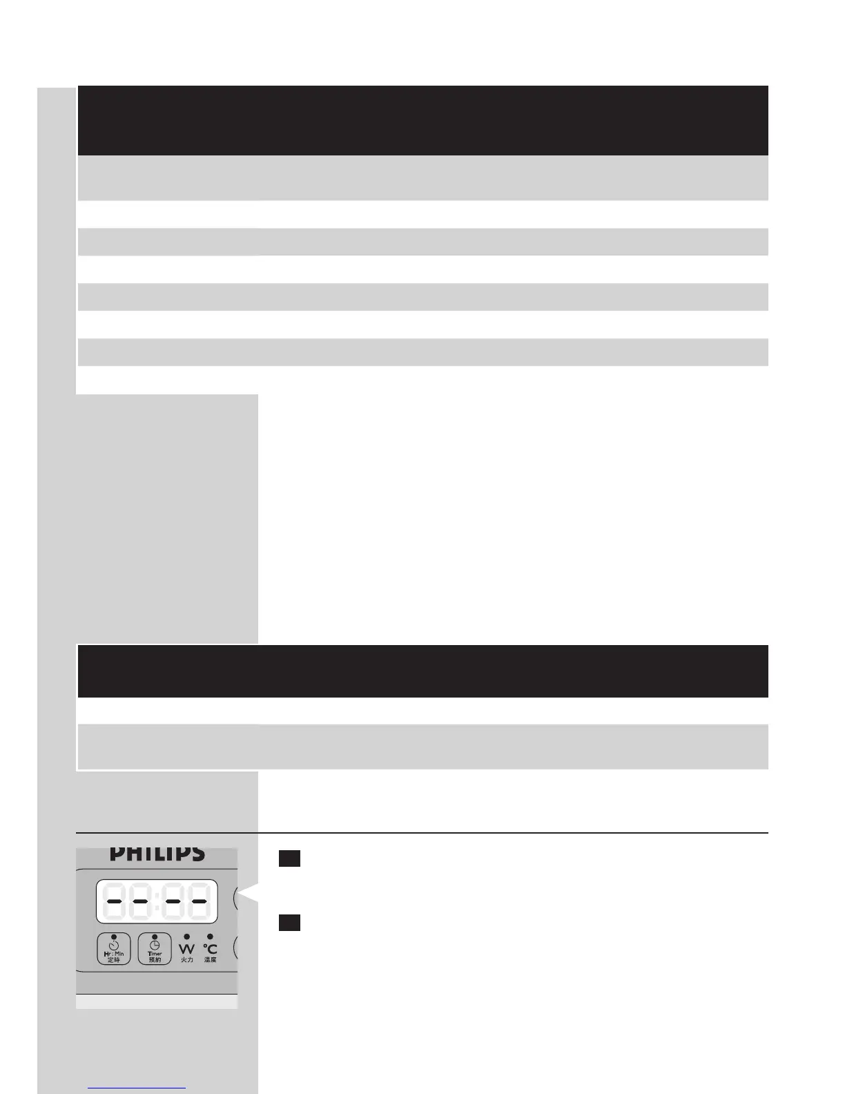 Soup/Congee 60 400-1400W 30-180 up to 12hrs Remaining cooking time