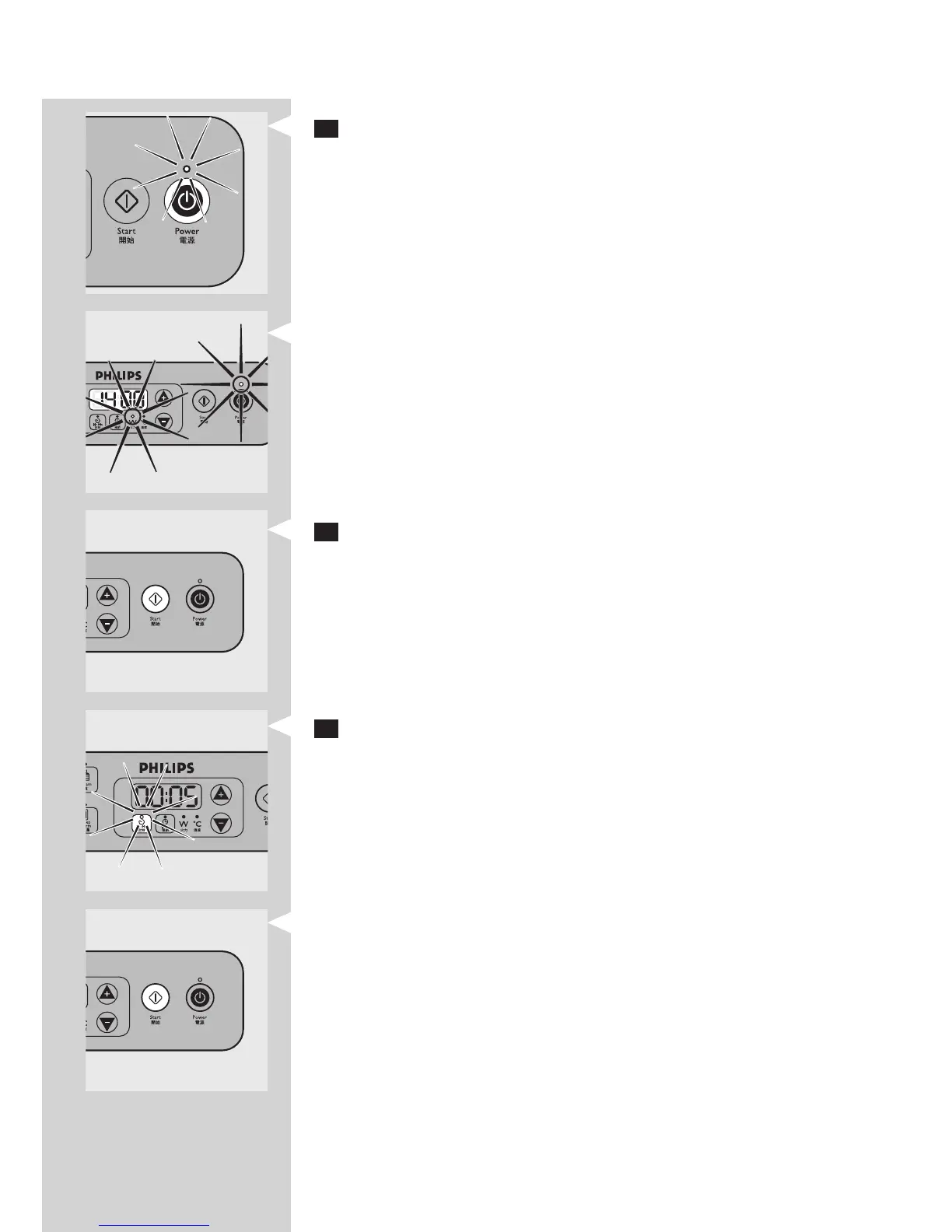 3 Press the Power on/off button once to switch on the appliance.