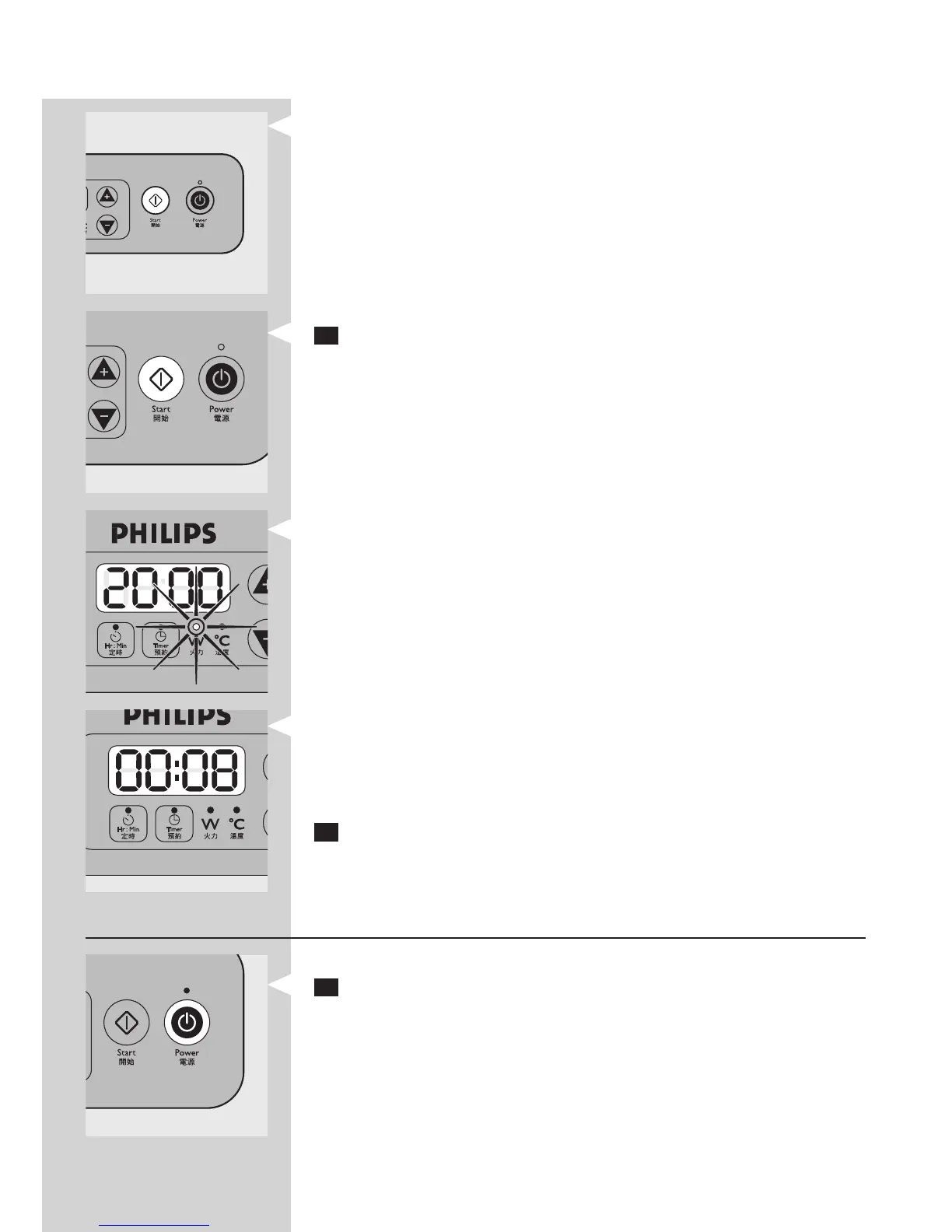 在烹饪期间,显示屏将显示功率大小。