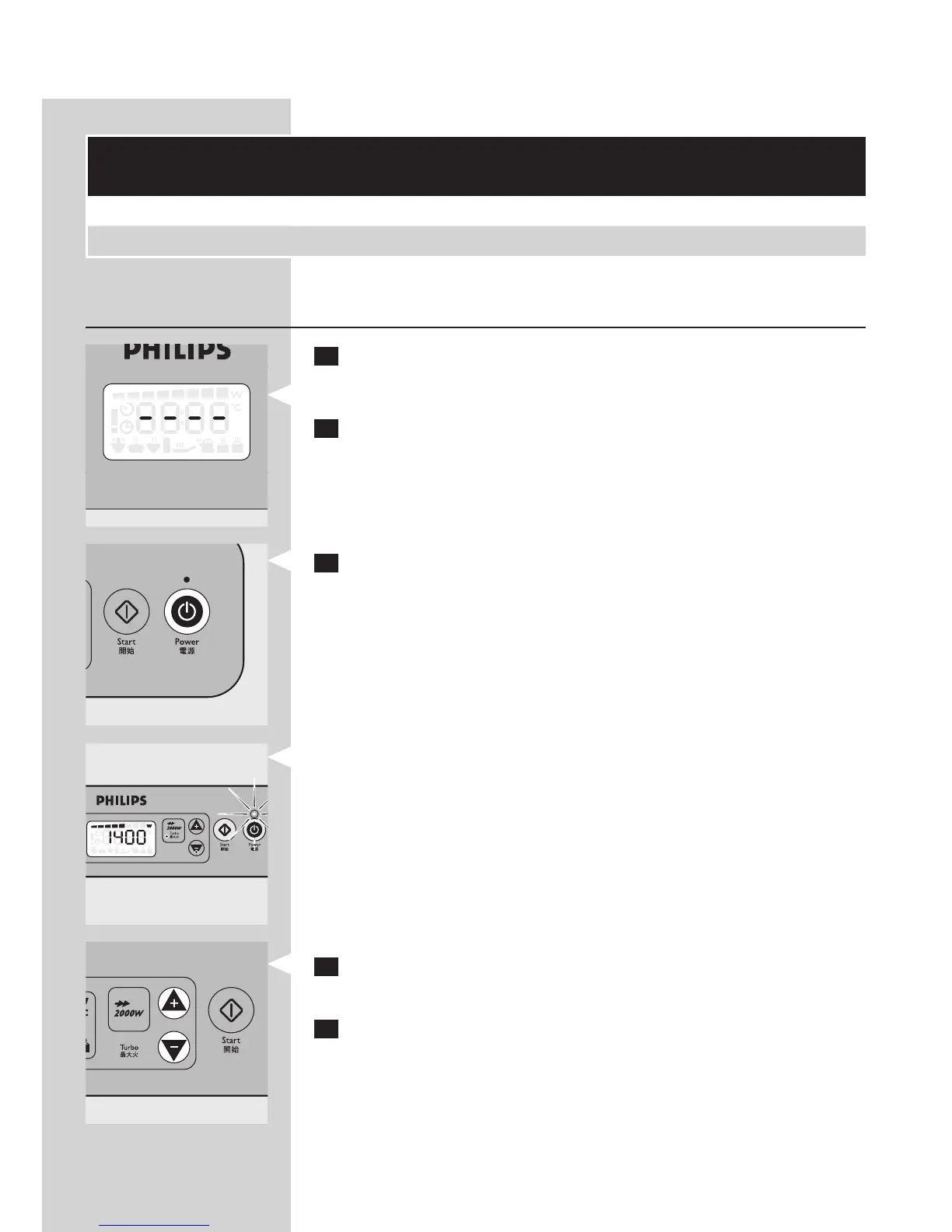 電源指示燈會亮起,顯示幕會顯示功率格和預設功率 1400W。
