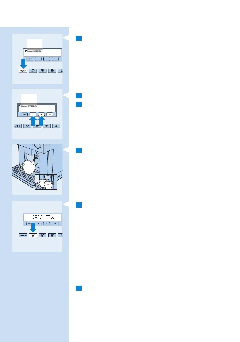 2 Tryk på knappen ^ eller % for at vælge den ønskede kaffestyrke.