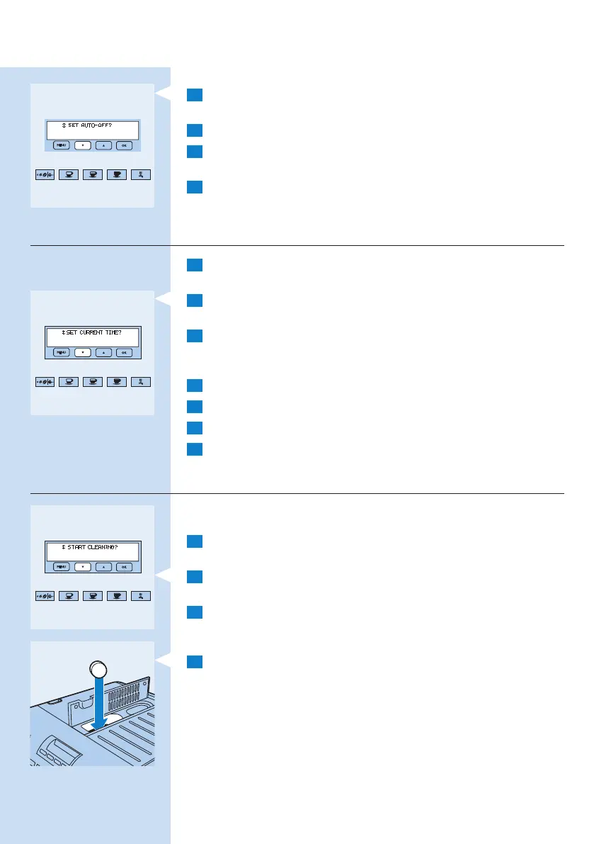 2 Tryk på ^-knappen, indtil meddelelsen “START CLEANING?”