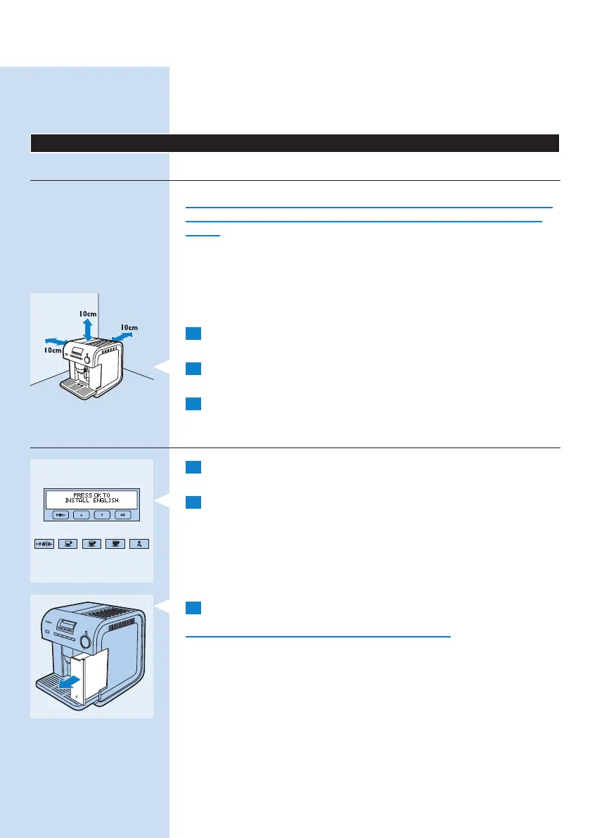 Merk: Det er normalt at det nnes rester av vann og kaffe i apparatet første