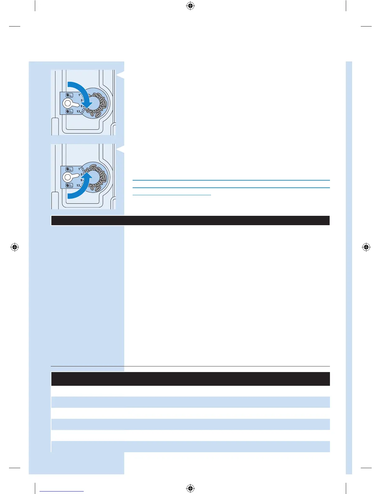 - Pour sélectionner une mouture plus grossière, tournez le bouton de