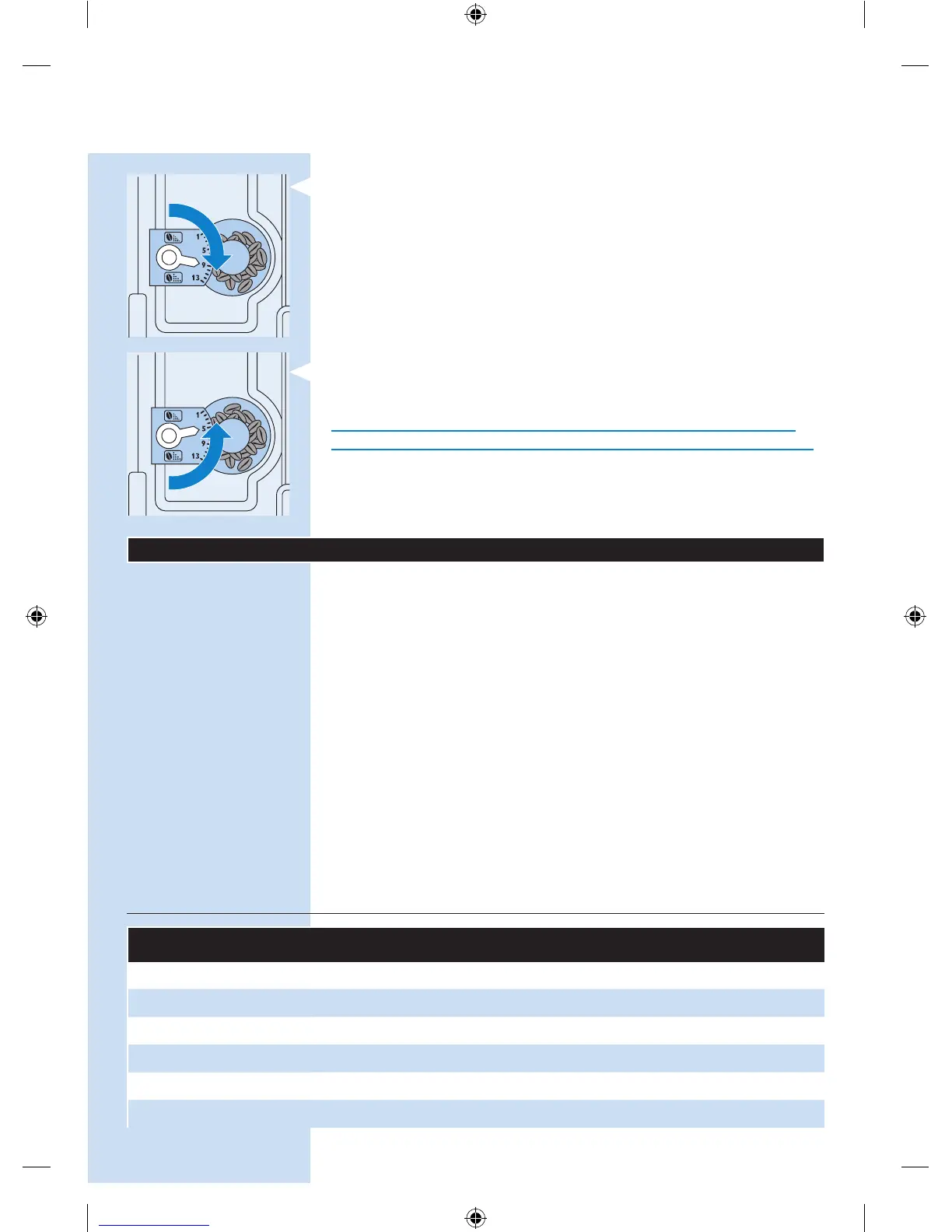- Draai de maalsterkteknop 1 stand naar rechts (‘klik’) als u een grovere