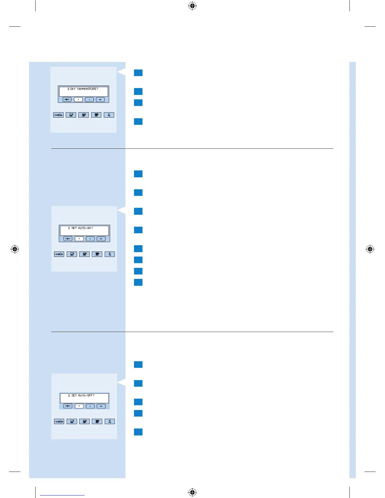 3 Press the ^ button until the message ‘SET AUTO-ON?’ appears on