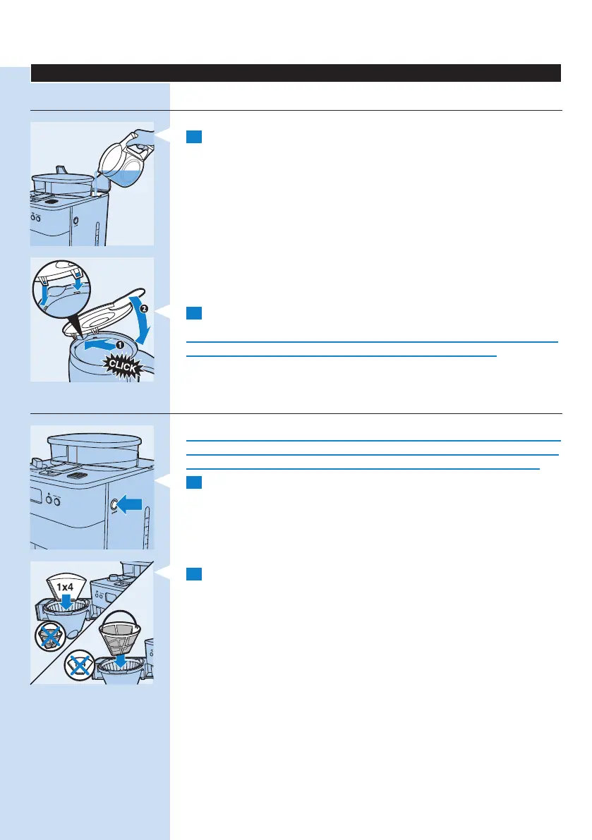 1 Abra a tampa de depósito da água e encha-o com água fria até ao