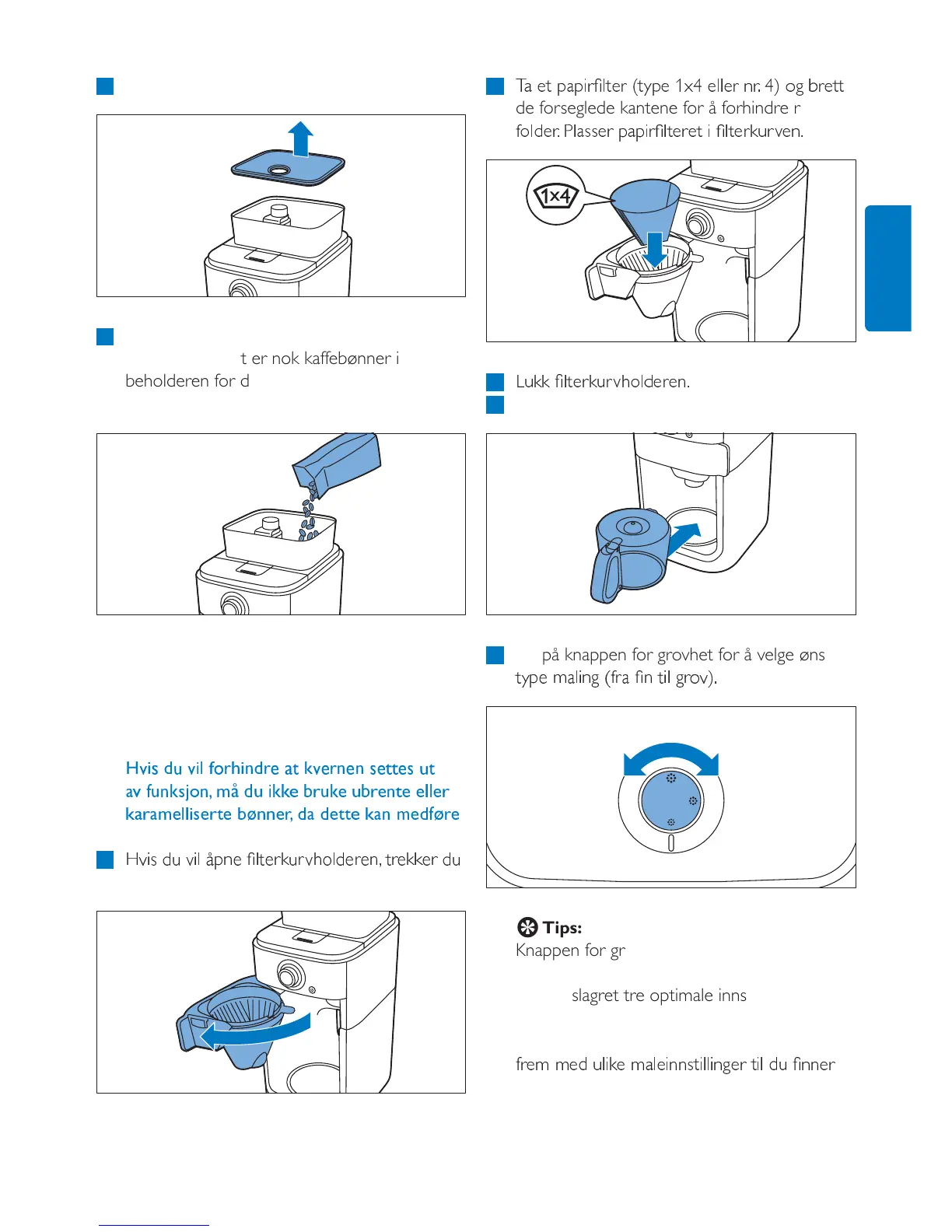 Sørg alltid for at kaffebønnebeholderen er