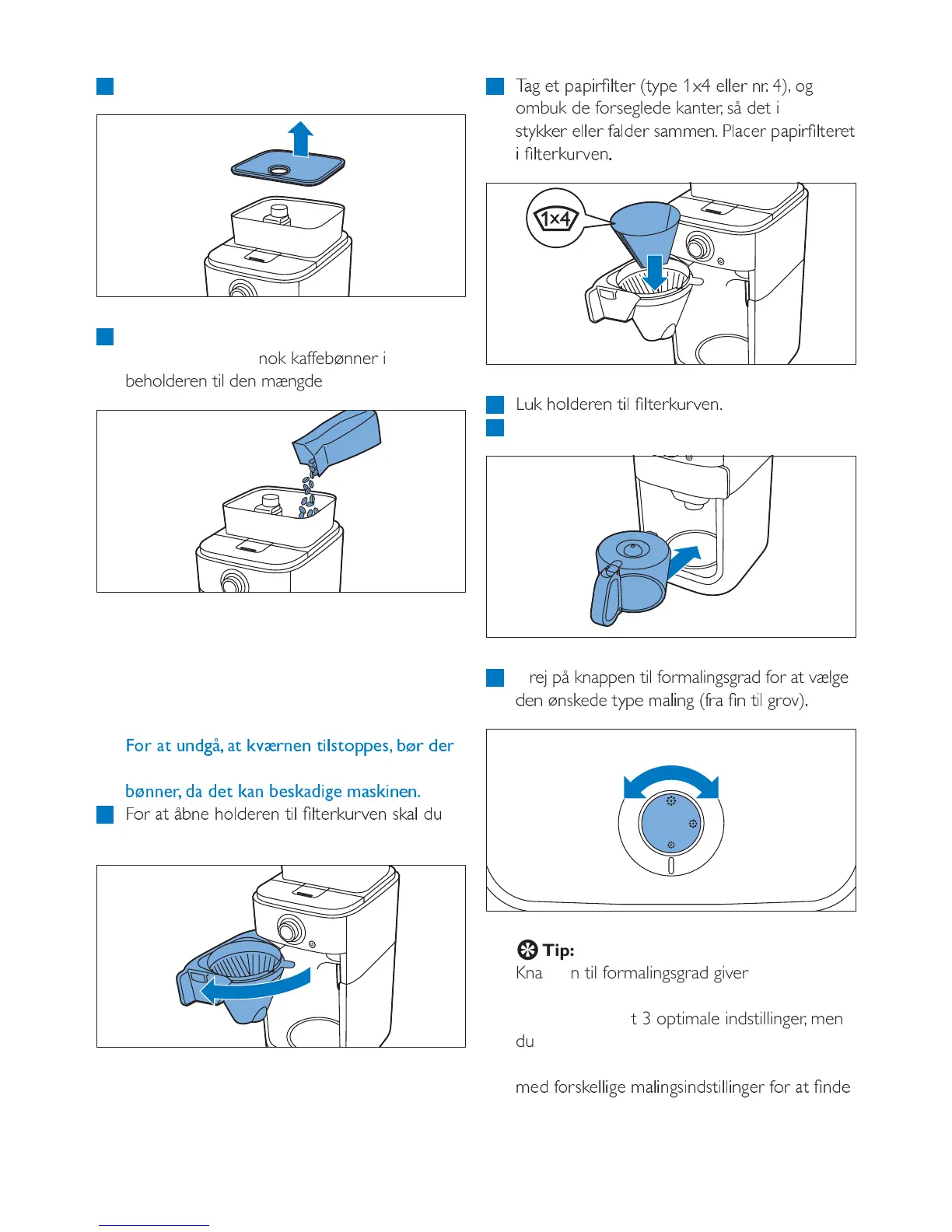 Sørg altid for, at beholderen til kaffebønner er