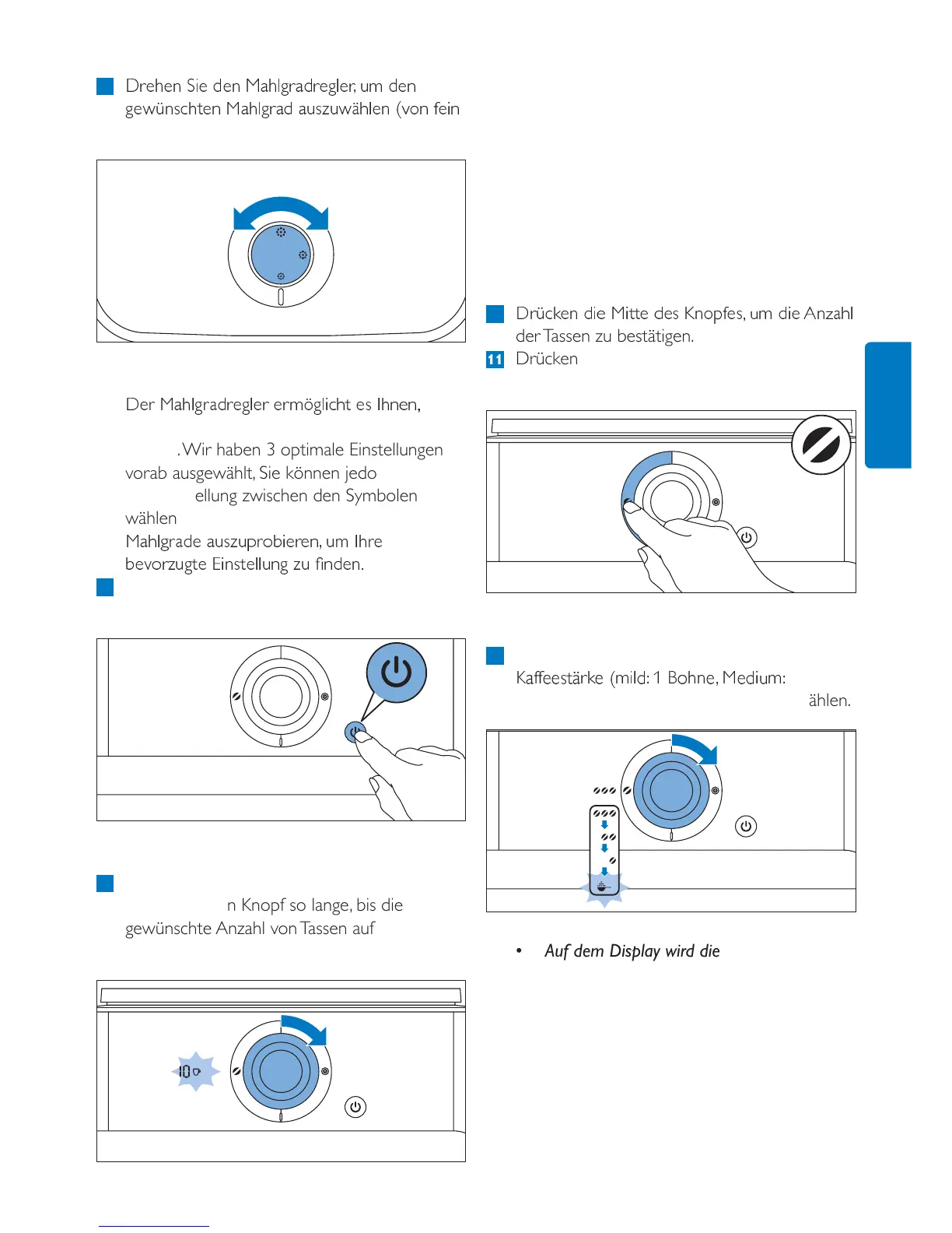 9 Um die Anzahl der Tassen auszuwählen,