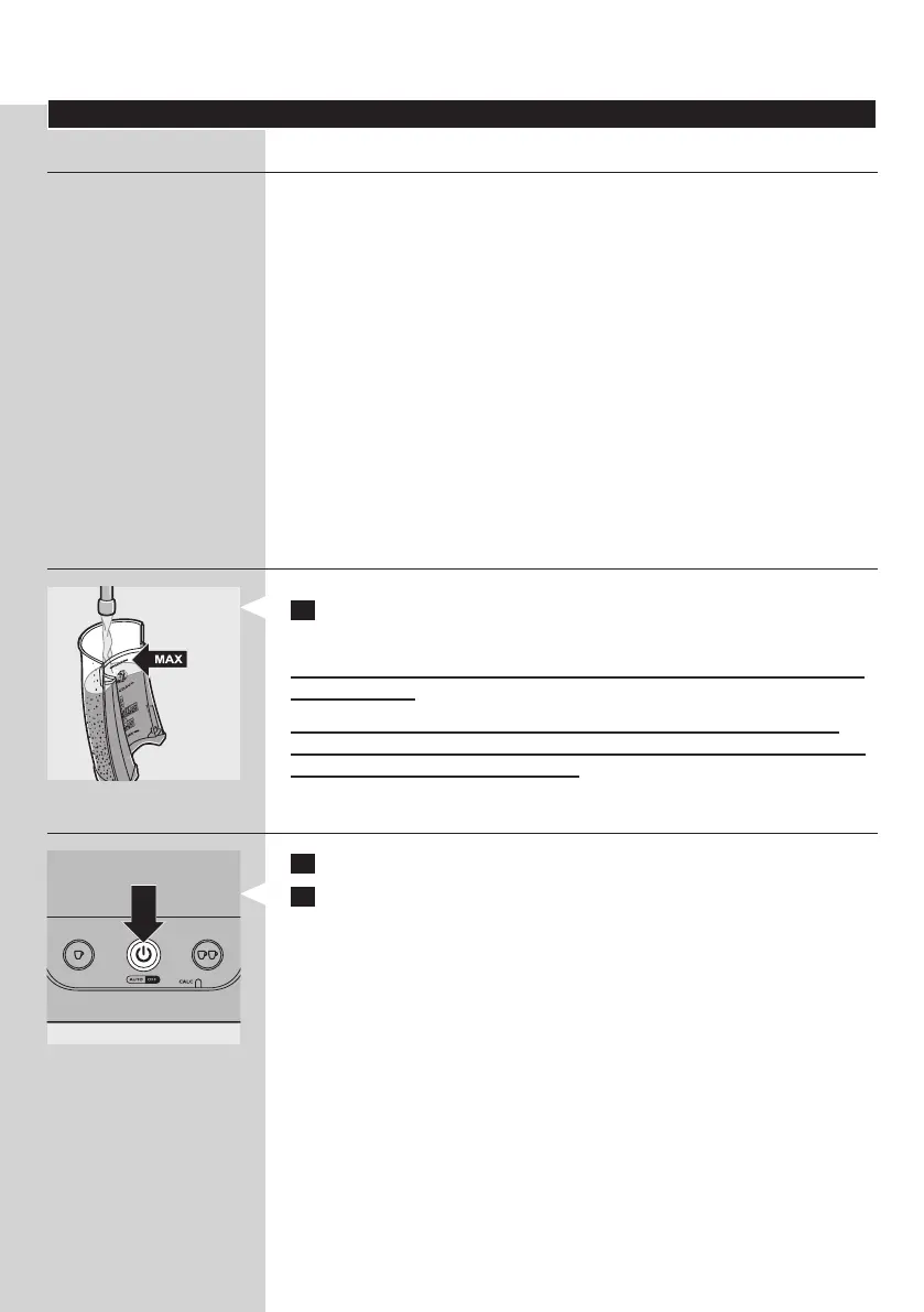 1 Remplissez le réservoir jusqu’au niveau MAX avec de l’eau fraîche,