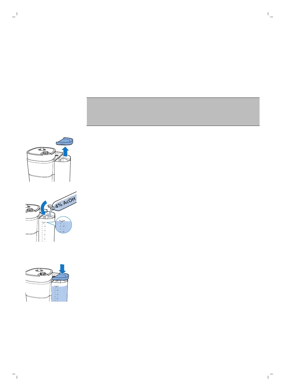 2 Remplissez le réservoir d'eau avec du vinaigre blanc (4% d'acide acétique)