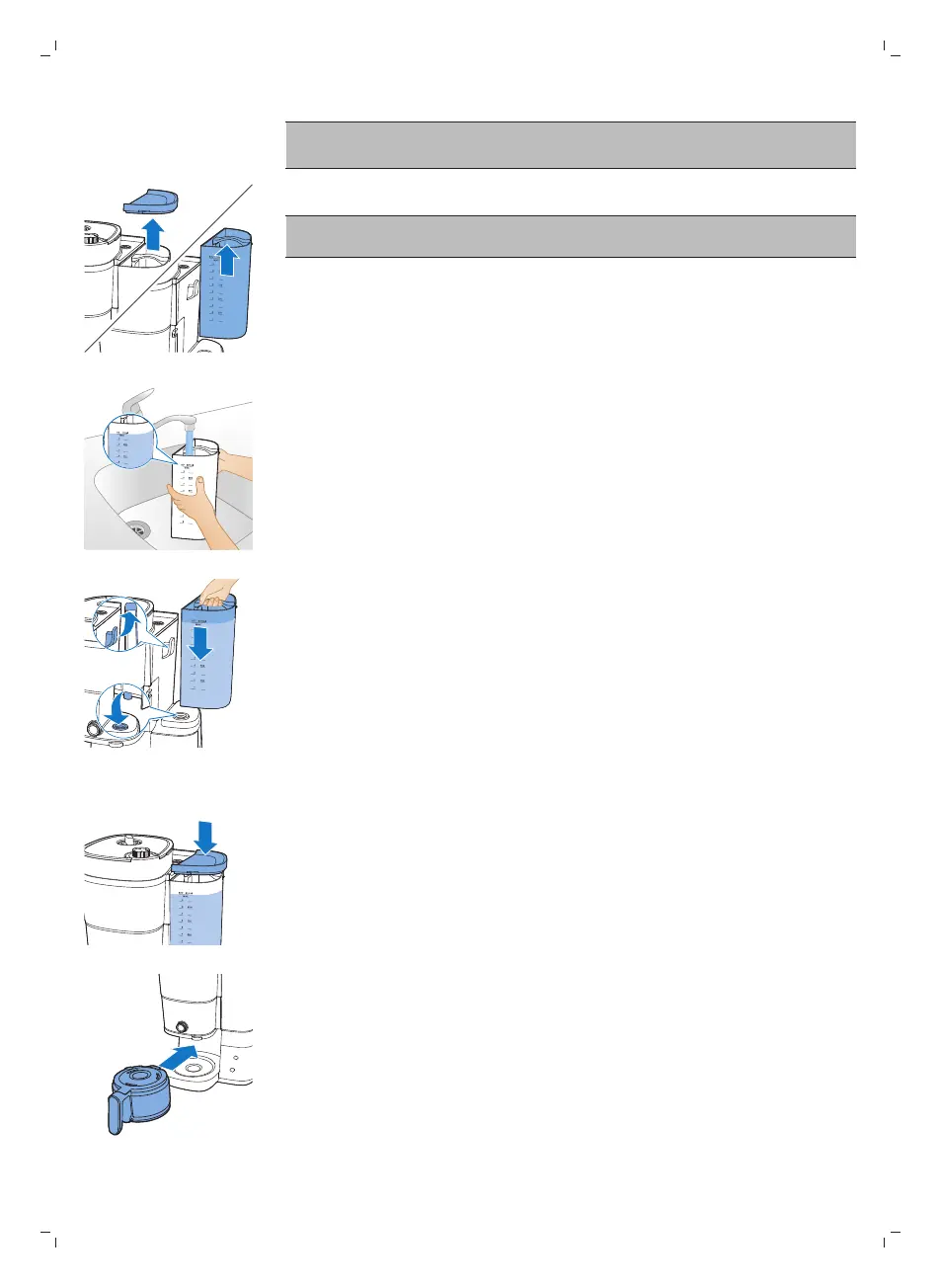 Levante o depósito do aparelho e coloque-o debaixo da torneira para encher