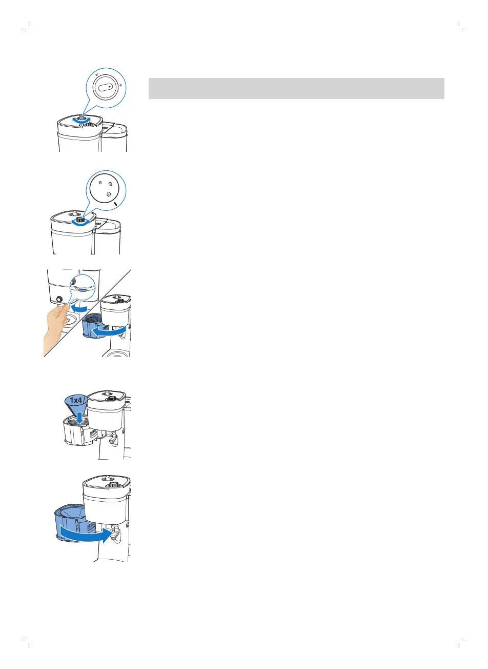 8 Rode o botão de bloqueio do recipiente para a posição de bloqueio.