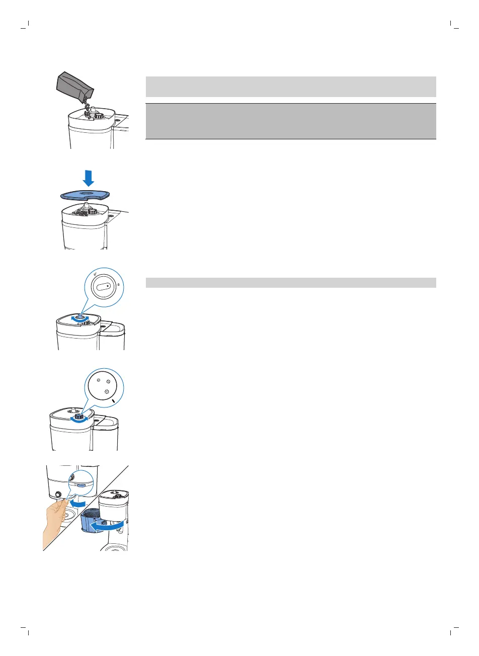8 Gumb za zaklep posode obrnite v zaklenjeni položaj.