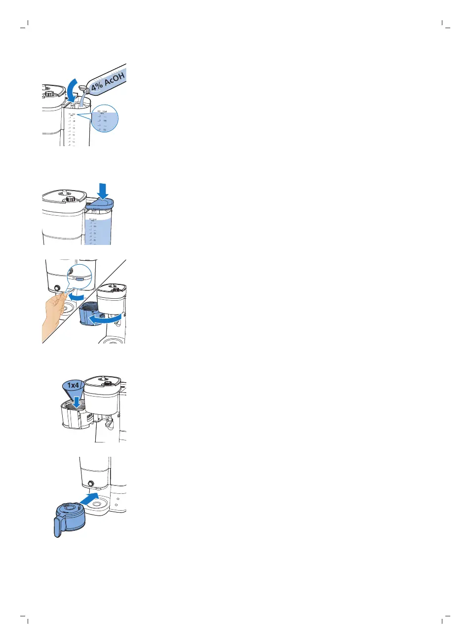 2 Lisää vesisäiliöön ruokaetikkaa (4% etikkaa) 10 kupin merkkiin asti.