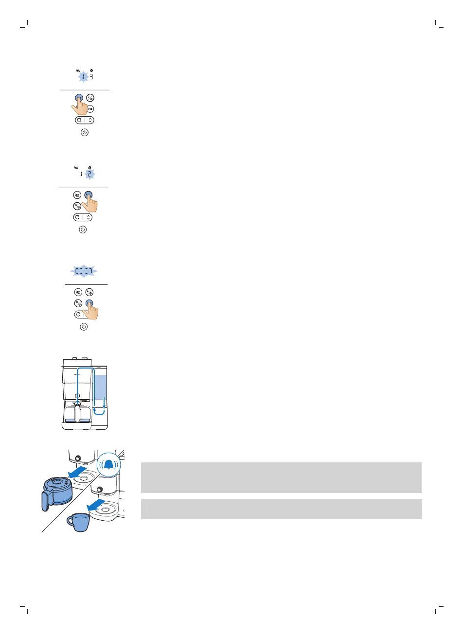 16 Välj hur många koppar du vill brygga genom att trycka på koppknappen.