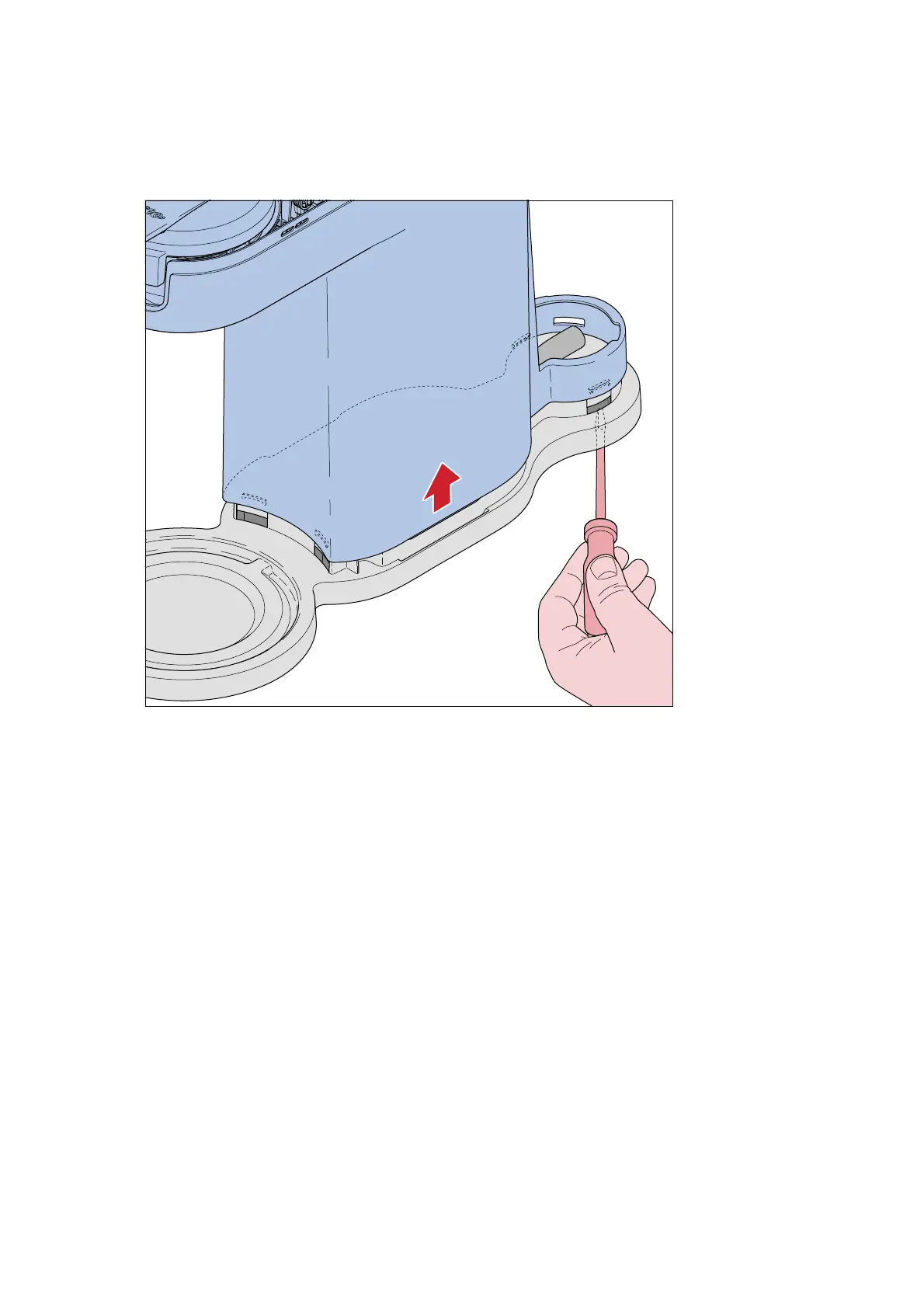 Remove the housing upwards from the rest of the appliance, but mind at cable running through the guide on the