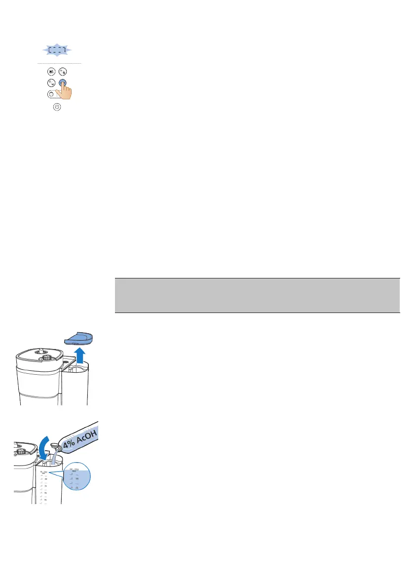 2 Llene el depósito de agua con vinagre blanco (4% de ácido acético) hasta la