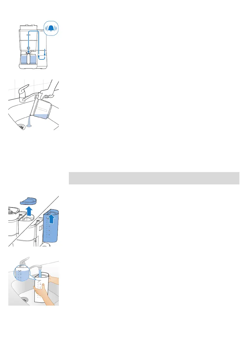 1 Nyissa fel a víztartály tetejét, és emelje le a tartályt a készülékről.