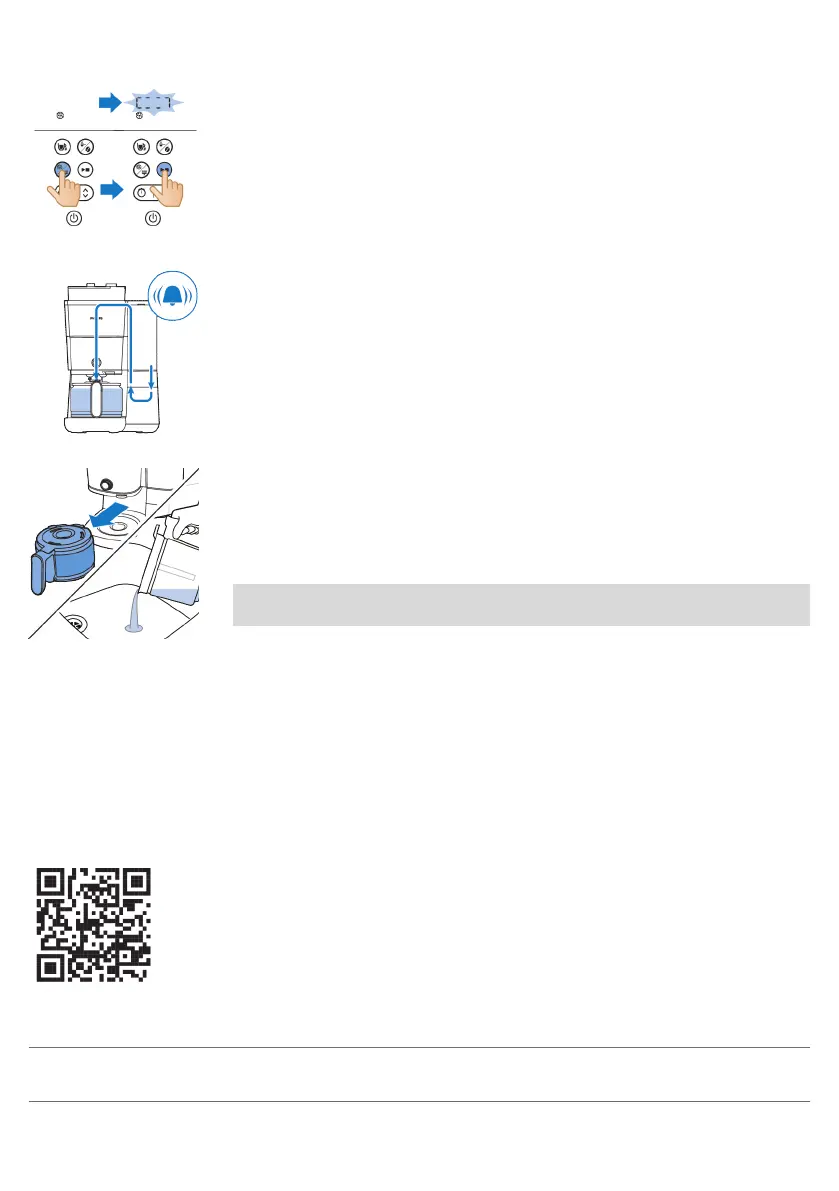 13 Zodra het ontkalken is voltooid, reinigt u het apparaat tweemaal met de