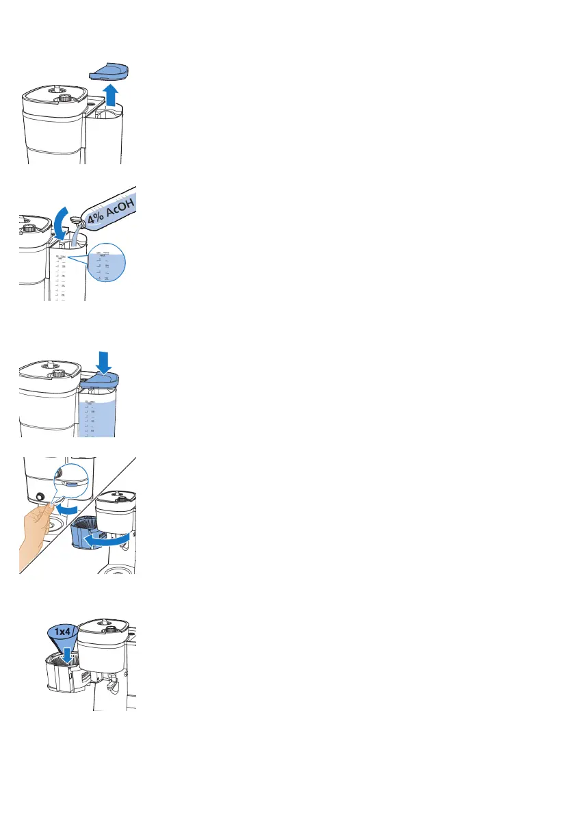2 Fyll vattentanken med ättika (4% ättiksyra) upp till indikeringen för 10