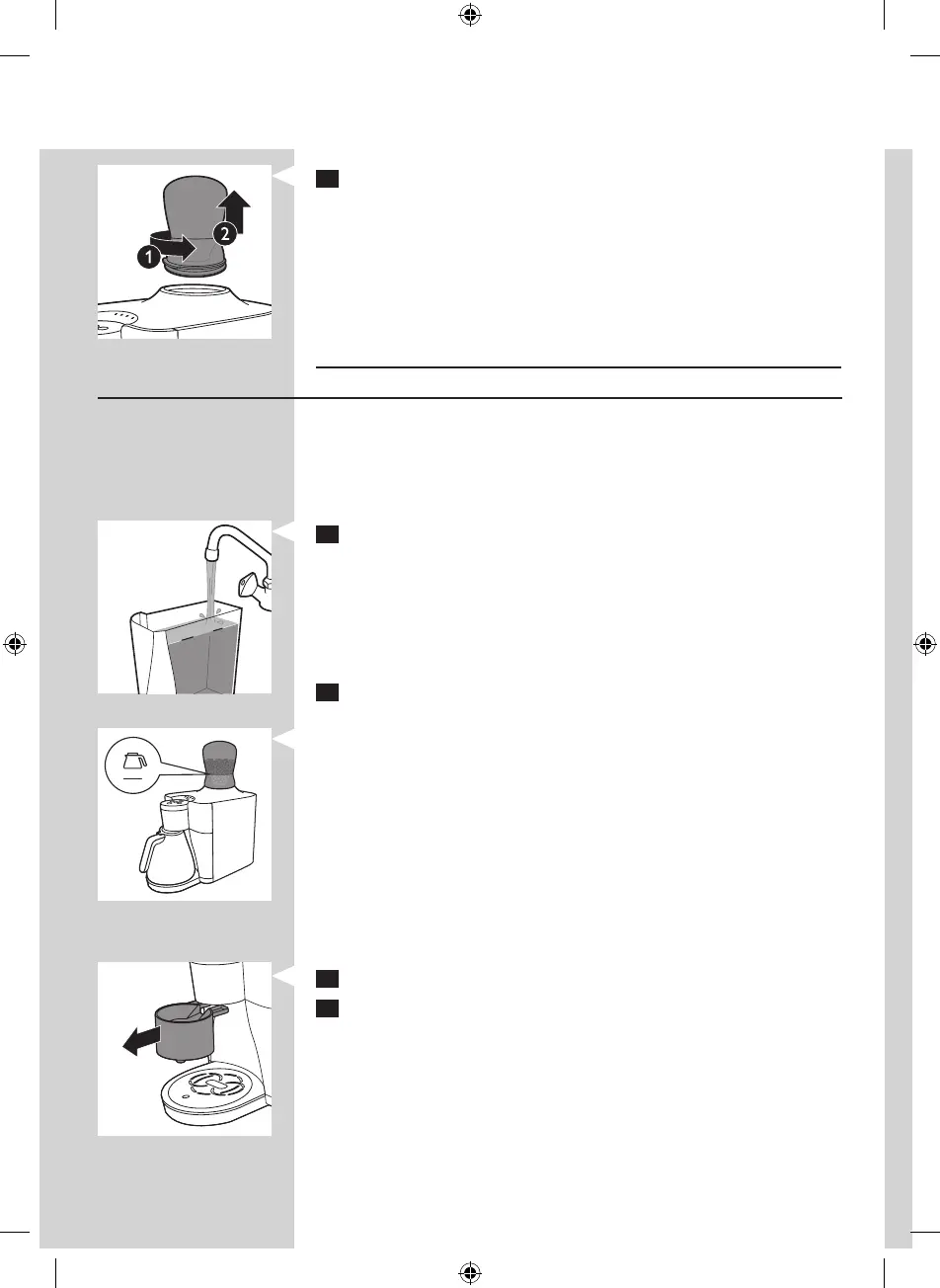 de grains de café dans l’entonnoir pour préparer six tasses de café. Remplacez