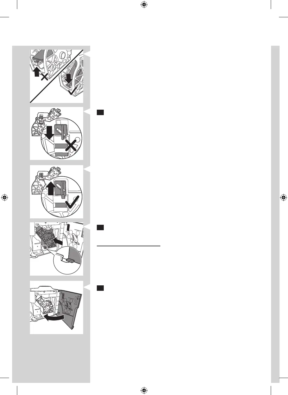 9 Zorg dat de vergrendelhaak van de zetgroep in de juiste stand staat.