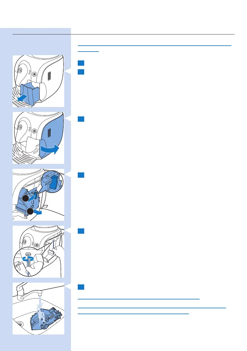 6 在水龍頭下以溫水沖洗沖煮裝置外部,並仔細清潔上方濾網。