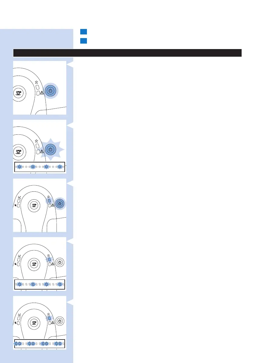 - 除垢指示燈持續閃爍兩次,代表咖啡機正在執行除垢程序的沖