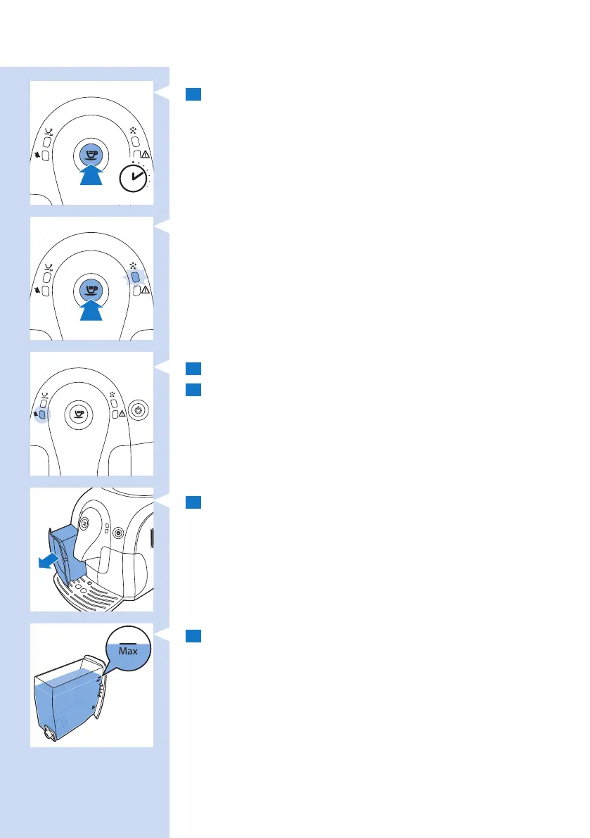 1 将水箱从咖啡机中取出并进行冲洗。
