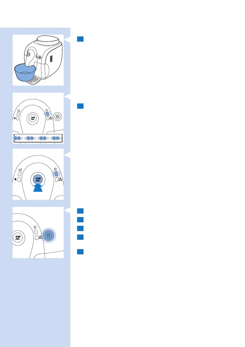 除垢周期。按照以下步骤确保咖啡机准备好再次冲煮咖啡。