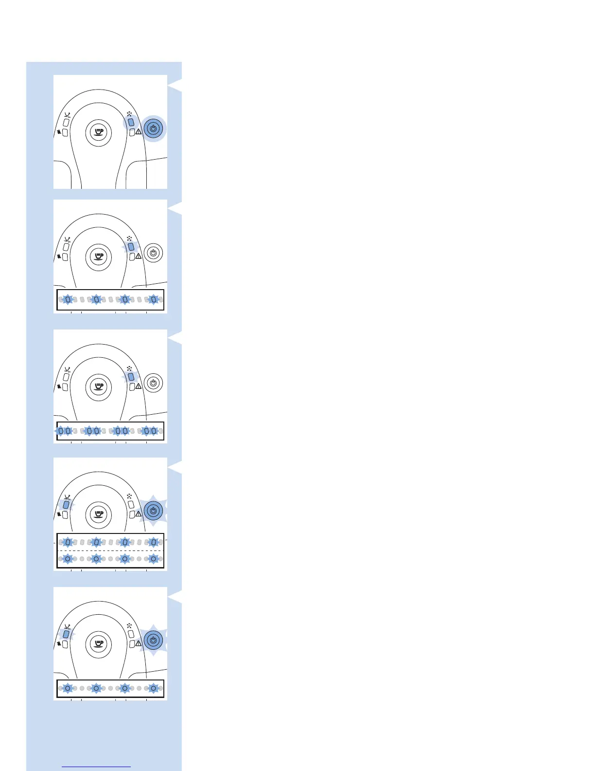 - Die Entkalkungsanzeige und der Ein-/Ausschalter leuchten