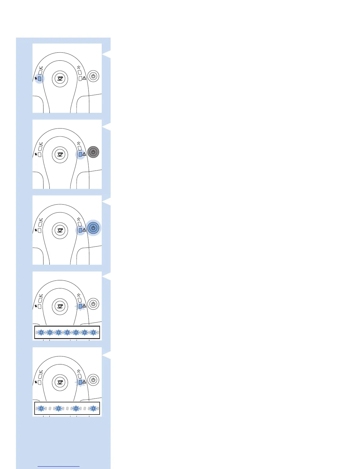 - Die Warnanzeige blinkt langsam. Die Brühgruppe ist nicht korrekt